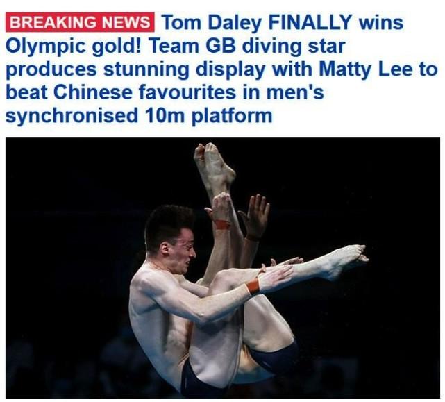 不仅是英国BBC解说,英国媒体第一时间也关注了他们国家组合爆冷击败中国跳水王牌的重磅事件。著名的《每日邮报》就以大标题“汤姆-戴利终于赢得奥运金牌了!”为题报道此战。