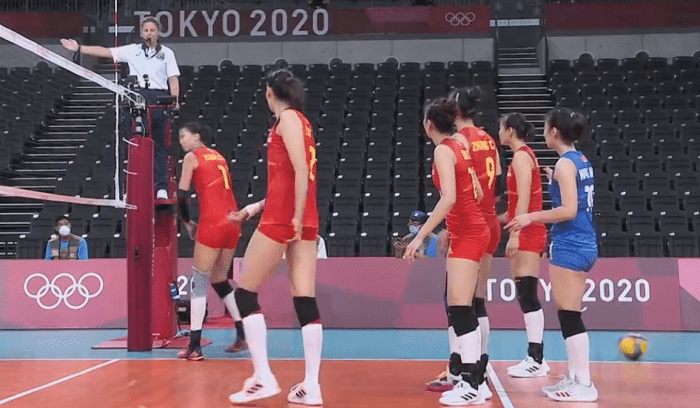 第二局比赛,中国女排再次遇到困难,开局就是0比5落后,这也是很被动的局面。土耳其跑到中国女排这边救球,裁判判丁霞阻挡对手的救球线路,直接判土耳其得分。之后,郎平换上李盈莹,换下朱婷,郎平也是主动调整,但还是没有得分,0比7落后,叫暂停。