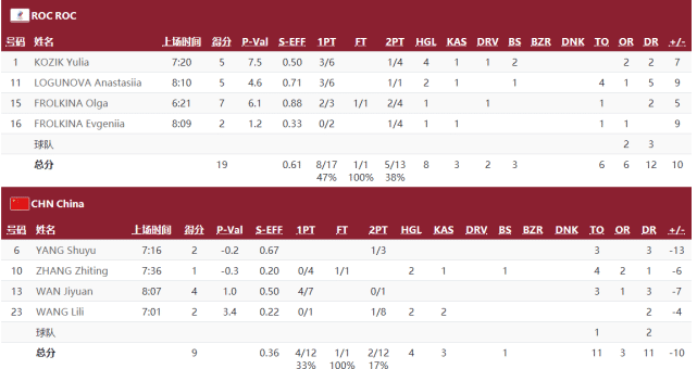 王丽丽全场也只得2分。上午的比赛,王丽丽拿下12分9板,打出了统治级的表现。但这场比赛,王丽丽9中1,其中远投只有8中1,可以说投篮完全失准。在接下来的比赛中,王丽丽和张芷婷都需要反弹!