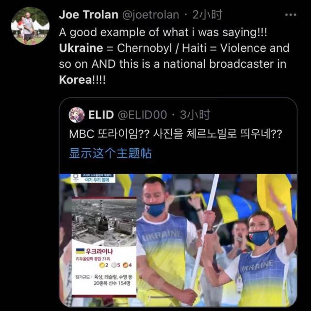 然而就在开幕式运动员入场的环节时,韩国电视台MBC的举动,却引发了巨大的争议。当乌克兰代表团进场、俊男靓女的旗手组合出现在直播画面时,这家韩国电视台竟然用“切尔诺贝利事件”,来介绍乌克兰奥运代表队,甚至还标出了切尔诺贝利核废墟的图片。