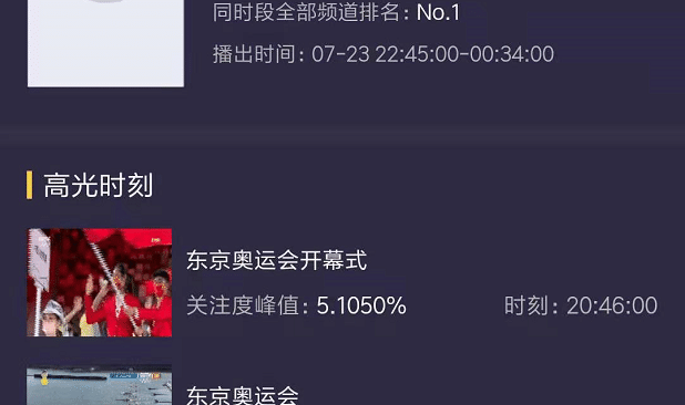 所以从这点上就可以看出,本届东京奥运会的开幕式,在国内虽然热议很大,但是收视率相对一般,这也和现场没有观众、本届奥运会开幕式表演以及我们国人对于奥运会的期待值不如2008年之前那么大有很大的关系。