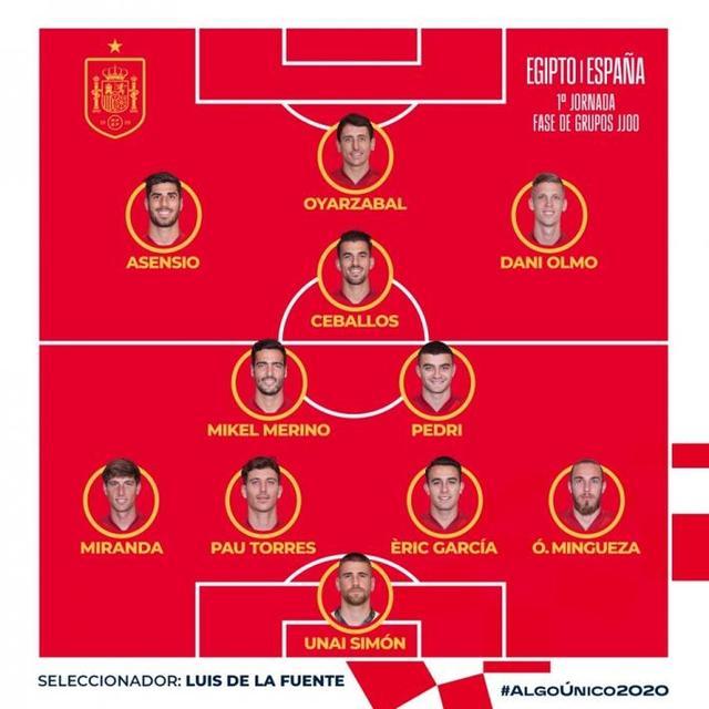 JRS直播网讯 今天下午15:30,奥运男足小组赛首轮,西班牙国奥vs埃及国奥首发公布。