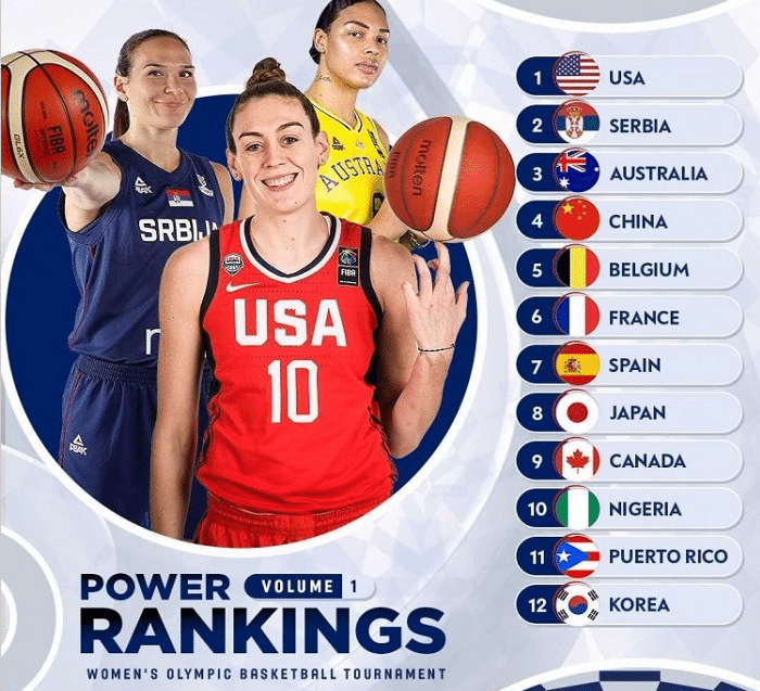 美国女篮高居第一名,虽然热身赛吃到连败,但是她们的实力还是傲视群雄的。