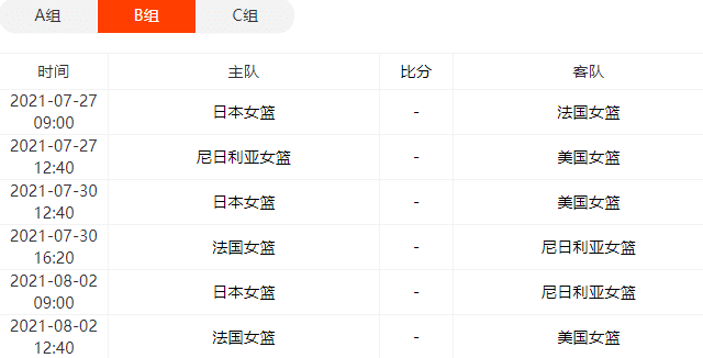 7月27日12:40,美国女篮VS尼日利亚女篮;