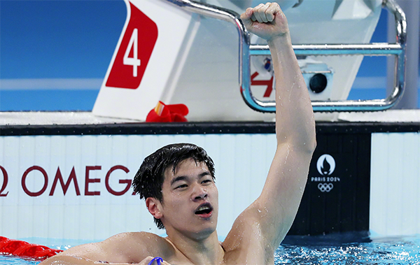 在男子100米自由泳金牌赛,19岁的潘展乐不负众望,以46秒40的成绩打破原本属于自己的世界纪录(46秒80)夺得金牌,比第二名快了1.08秒;潘展乐向全世界展示中国速度,也为中国游泳队在巴黎奥运会上夺得首金。