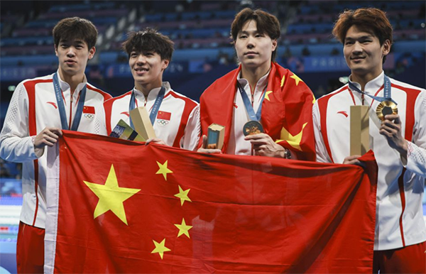 在赢得4x100米混合泳接力决赛的金牌后,潘展乐说道:“特别佩服他们三个(队友),(队友)不满意成绩,但比赛已经结束了,冠军是我们的,不满意的应该是别人。”