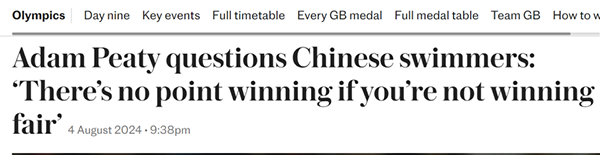 中国游泳队破垄断夺冠,皮蒂质疑遭网友回怼
