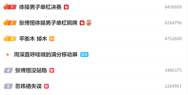 赛后张博恒体操男子铜牌、张博恒没站稳以及苏炜德失误都冲上热搜引热议,赛后,苏炜德再次就此前在男团决赛中出现两次掉杠失误表达了歉意:我接受一切批评,这也是对我的一种成长,犯错了就不能逃避。我接受一切的批评。
