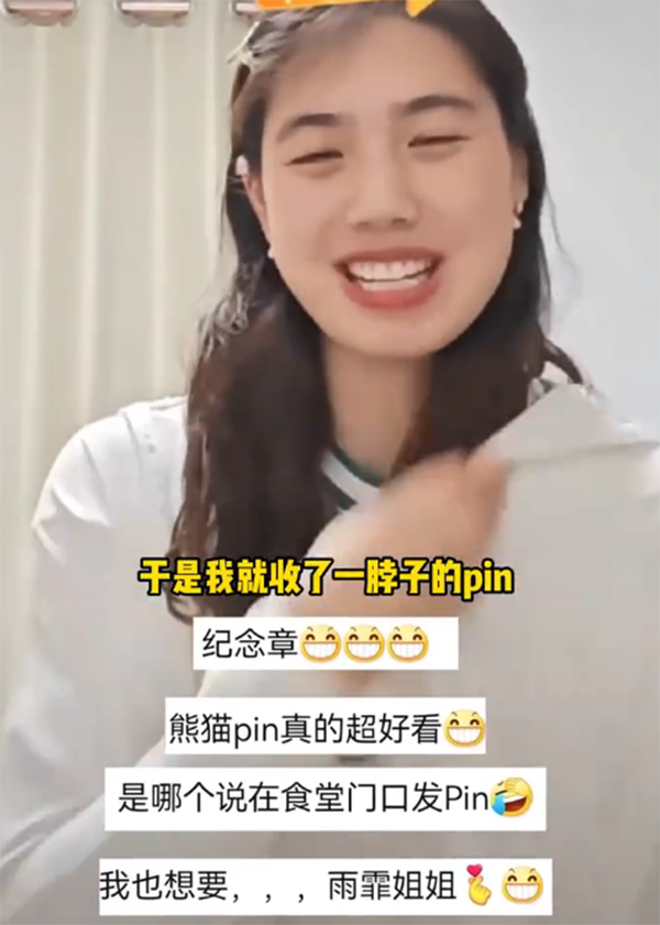 据悉,多名外国运动员都晒视频炫耀自己拿到了中国队的pin(徽章)。