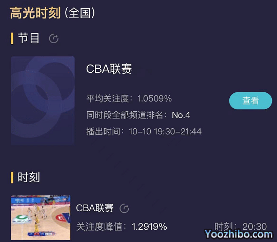 这场比赛的关注度拉满,因为赛前有总冠军戒指颁奖仪式,比赛期间有孙铭徽和郭艾伦的国手对决、杨鸣和王博的斗法,还有两队以往的恩怨等等,所以很多球迷选择收看了这场比赛。根据数据统计显示,这场比赛的平均收视率破1%,巅峰时刻更是高达1.2919%,在黄金时代可以贡献出如此高的收视率,足以看出大家对于CBA开幕关注以及辽篮、广厦的影响力。