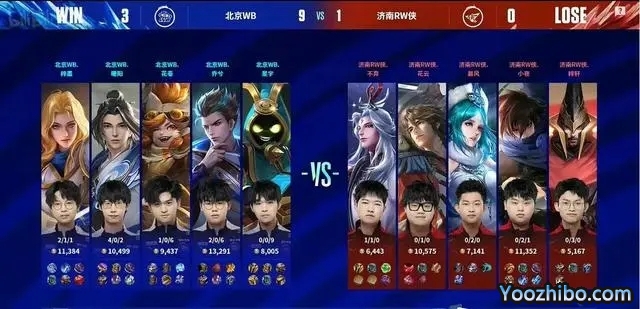 JRS直播网讯 北京时间04月19日,在KPL第二场比赛中,北京WB以3-0的比分碾压济南RW侠,豪取三连胜,拿下第三轮常规赛的第三个大场积分,也是成为本赛季第一支锁定季后赛胜者组的战队。