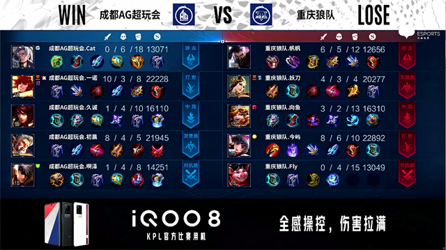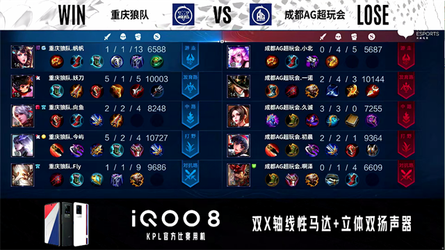 JRS直播网讯 10月1日2021年KPL秋季赛常规赛第二周第三日第三场,由重庆狼队对阵成都AG超玩会,以下是本场比赛快讯。