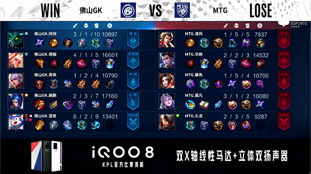 JRS直播网讯 10月1日2021年KPL秋季赛常规赛第二周第三日第二场,由MTG对阵佛山GK,以下是本场比赛快讯。