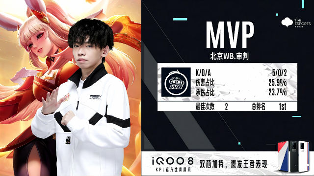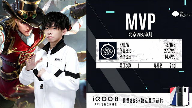 47秒,上海RNG.M橘右京开局反掉北京WB蓝buff。2分25秒,北京WB公孙离下路击杀大乔拿下一血。2分42秒,北京WB吕布上路击杀橘右京。4分45秒,双方两处爆发交火,最终1换1。6分07秒,北京WB娜可露露配合姜子牙中路击杀橘右京,随后控下先知主宰。6分38秒,中路团,双方1换1。7分33秒,北京WB姜子牙大招击杀虞姬,随后队伍破掉上海RNG.M中一塔。8分40秒,下路团,北京WB打出1换3。9分25秒,北京WB破掉上海RNG.M中二塔。9分46秒,北京WB破掉上海RNG.M上二塔。10分18秒,北京WB控下暗影暴君。10分36秒,北京WB上路击杀虞姬。11分01秒,北京WB越高地击杀大乔,随后陆续破掉上海RNG.M中、上两座高地。12分30秒,上海RNG.M团战打出0换2。13分57秒,下路团,北京WB打出1换4。14分26秒,北京WB摧毁上海RNG.M水晶拿到赛点。