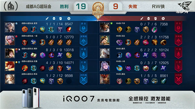 开局RW侠梦奇走中,成都AG反掉敌方蓝BUFF。45秒RW侠野区击杀盘古拿到一血。1分13秒成都AG拿下中路河道之灵。1分23秒RW侠反掉敌方红BUFF。2分27秒成都AG拿下暴君。2分41秒RW侠拿下主宰。3分14秒中路双方1换1。3分34秒RW侠摧毁敌方发育路外塔。4分40秒双方对抗路1换1。5分36秒野区团战RW侠击杀孙膑。5分48秒RW侠摧毁敌方发育路二塔。6分44秒RW侠拿下暴君。6分53秒成都AG拿下主宰。7分54秒RW侠摧毁敌方对抗路外塔。8分49秒中路团战成都AG击杀梦奇。9分55秒成都AG中路下河道击杀梦奇。10分17秒成都AG拿下暗影主宰。10分30秒成都AG摧毁敌方中路外塔。10分59秒成都AG发育路打出0换2。11分40秒成都AG摧毁敌方中路二塔。12分20秒成都AG发育路击杀太乙真人,RW侠中路击杀不知火舞。12分38秒成都AG拿下暗影暴君。13分48秒中路团战成都AG打出0换4,成吉思汗拿到三连决胜。14分17秒成都AG团灭对手摧毁水晶拿下比赛。