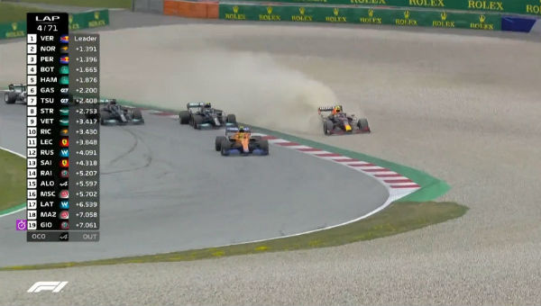 发车:奥康退赛引发安全车 佩雷兹被挤出赛道狂丢位置