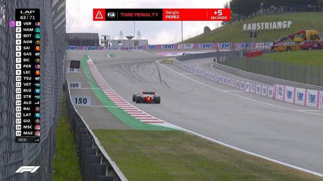 第41圈,佩雷兹过弯时碰到勒克莱尔的赛车,并将后者挤出赛道。墨西哥人也因此被罚时5秒。第47圈,佩雷兹再次将与自己缠斗的勒克莱尔挤出赛道。第49圈,汉密尔顿在1号弯冲出赛道,并向车队表示轮胎坚持不到完赛。第50圈,马泽平由于多次违反赛道限制,被出示黑白旗。