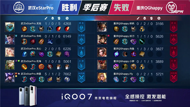 JRS直播网讯 6月12日2021KPL春季赛季后赛败者组第三轮,由武汉eStarPro对阵重庆QGhappy,以下是本场比赛快讯。