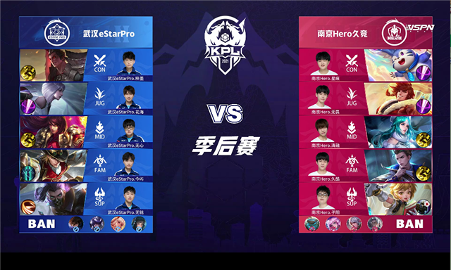 JRS直播网讯 6月5日2021KPL春季赛季后赛胜者组第一轮,由武汉eStarPro对阵南京Hero久竞,以下是本场比赛快讯。