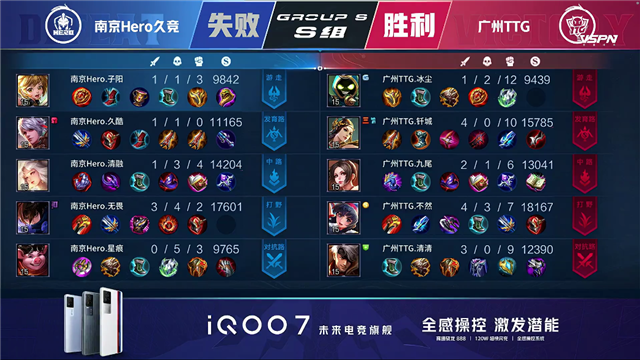 开局49秒广州TTG太乙真人击杀孙膑拿下一血,1分17秒中路团战广州TTG打出1换3。2分16秒南京Hero拿下暴君,广州TTG拿下先知主宰。4分钟南京Hero击杀不知火舞,6分55秒广州TTG拆掉南京Hero上路一塔。7分55秒南京Hero拆掉广州TTG中路一塔,10分22秒中路团广州TTG击杀猪八戒。10分51秒广州TTG拿下暗影暴君,12分31秒广州TTG击杀猪八戒。14分29秒上路团广州TTG打出0换3,虞姬拿下三杀,15分钟广州TTG拆掉南京Hero上路高地。17分32秒广州TTG拿下暗影主宰,19分30秒广州TTG拿下暗影暴君。21分05秒团战广州TTG打出3换4,21分43秒广州TTG拆掉南京Hero中路高地,一波摧毁南京Hero水晶。