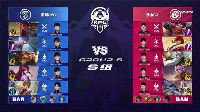 双方平稳开局,2分43秒深圳DYG拿下第一条暴君。5分19秒佛山GK拿下先知主宰,6分钟深圳DYG下路一塔被破。6分51秒深圳DYG拆掉佛山GK中路一塔,佛山GK摧毁深圳DYG上路一塔。8分37秒佛山GK拆掉深圳DYG下路二塔,10分42秒佛山GK拿下暗影暴君。11分47秒团战深圳DYG姜子牙击杀王昭君拿下一血,双方1换1。12分54秒深圳DYG拿下暗影主宰并击杀娜可露露,13分20秒佛山GK拆掉深圳DYG中路一塔。13分40秒佛山GK打出0换3,拆掉深圳DYG上路二塔,14分06秒佛山GK拆掉深圳DYG上路高地。15分20秒深圳DYG拿下暗影暴君,拆掉佛山GK中上路二塔。16分52秒团战佛山GK打出1换4,17分20秒佛山GK带领上路兵线一波摧毁深圳DYG水晶。