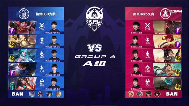 JRS直播网讯 4月25日2021KPL春季赛常规赛第五周第五日第一场比赛,由A组的南京Hero久竞对阵杭州LGD大鹅,以下是本场比赛快讯。
