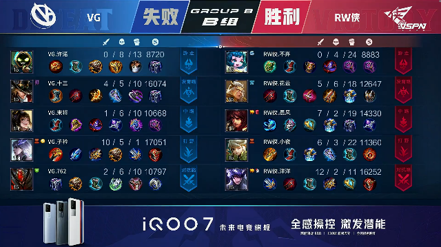 JRS直播网讯 4月16日2021KPL春季赛常规赛第四周第三日第一场比赛,由B组的VG对阵RW侠,以下是本场比赛快讯。