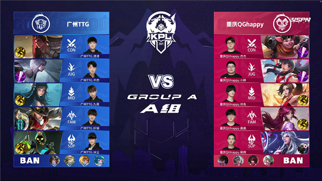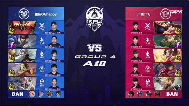 JRS直播网讯 4月10日2021KPL春季赛常规赛第三周第四日第一场比赛,由A组的广州TTG对阵重庆QGhappy,以下是本场比赛快讯。