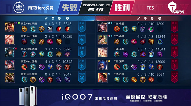 2分16秒,南京Hero拿下暴君。4分40秒,下路团,双方2换2,马可波罗拿下双杀。5分10秒,南京Hero破掉TES下一塔。7分07秒,南京Hero破掉TES中一塔。7分44秒,中路团,南京Hero击杀马可波罗。8分11秒,南京Hero破掉TES下二塔。9分48秒,TES拿下先知主宰。10分47秒,TES抢下暗影暴君,随后团战TES打出1换4,不知火舞与马可波罗拿下双杀。11分27秒,TES下路击杀墨子团灭对手,随后破掉南京Hero中路高地。12分28秒,TES不知火舞击杀澜,随后控下暗影主宰。15分09秒,TES拿下暗影暴君。16分12秒,TES破掉南京Hero上高地。16分35秒,南京Hero击杀盘古。17分20秒,南京Hero墨子击杀不知火舞。17分50秒,南京Hero拿下暗影主宰。19分27秒,南京Hero澜击杀太乙真人。19分58秒,TES中路反打打出1换4。20分35秒,TES破掉南京Hero水晶拿下胜利。