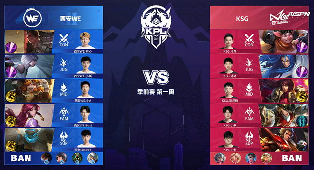 JRS直播网 3月13日2021KPL春季赛季前赛第一周第三日比赛,由西安WE对阵KSG,以下是本场比赛快讯。