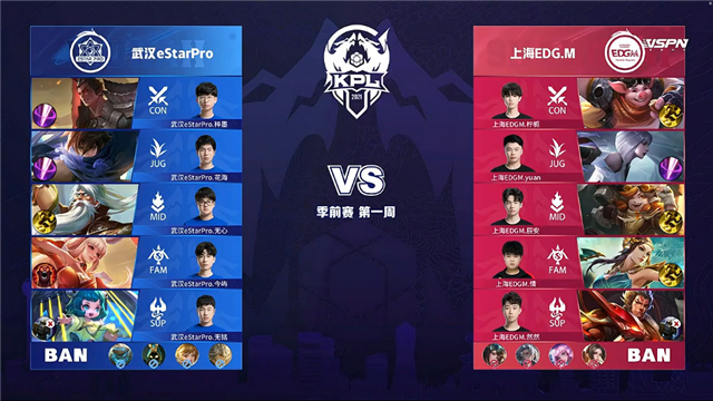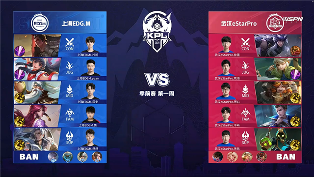 JRS直播网 3月12日2021KPL春季赛季前赛第一周第二日比赛,由武汉eStarPro对阵上海EDG.M,以下是本场比赛快讯。