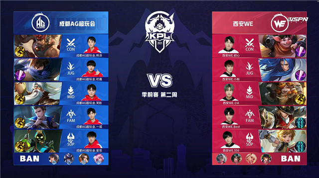 JRS直播网 3月18日2021KPL春季赛季前赛第二周第一日比赛,由成都AG超玩会对阵西安WE,以下是本场比赛快讯。