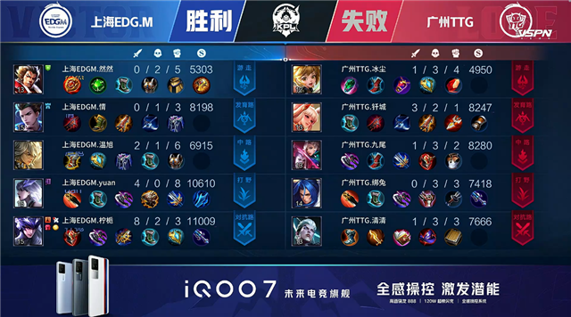 上海EDG.M选用:鲁班大师、娜可露露、吕布、周瑜、后羿