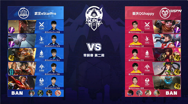 JRS直播网 3月18日2021KPL春季赛季前赛第二周第一日比赛,由重庆QGhappy对阵武汉eStarPro,以下是本场比赛快讯。