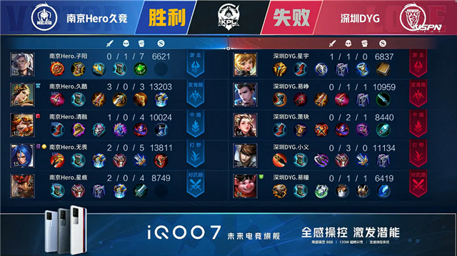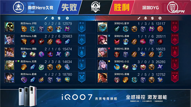 双方平稳开局,1分07秒南京Hero拿到中路河道之灵。2分10秒南京Hero拿下暴君。2分41秒南京Hero野区击杀娜可露露拿到一血。4分46秒南京Hero击杀虞姬并摧毁下路外塔。6分43秒深圳DYG拿下暴君。8分39秒南京Hero拿下主宰。9分整南京Hero野区击杀廉颇。9分59秒野区团战深圳DYG打出0换4。10分27秒深圳DYG摧毁敌方中路外、二塔。11分54秒上路团战深圳DYG打出0换2。12分40秒深圳DYG上路击杀镜并摧毁高地塔。13分44秒深圳DYG摧毁敌方下路二塔。14分12秒深圳DYG摧毁敌方下路高地塔。14分50秒深圳DYG娜可露露下路单杀镜。15分15秒深圳DYG拿下暗影暴君。15分40秒高地团战深圳DYG团灭对手摧毁水晶拿下比赛。