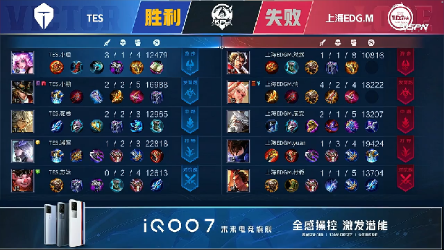 TES三Buff开局,2分12秒TES拿下第一条暴君,2分34秒TES马超击杀娜可露露拿下一血。5分10秒下路团TES击杀廉颇,上路娜可露露单杀马超。5分52秒TES拆掉上海EDG.M中路一塔,6分20秒上海EDG.M上路击杀马超并拆掉TES上路二塔。9分31秒中路团上海EDG.M击杀阿古朵,10分23上海EDG.M拿下暗影暴君,11分钟上海EDG.M拿下暗影主宰。12分钟团战TES打出1换3,12分54秒中路团双方1换1,TES拆掉上海EDG.M中路一塔。14分16秒上路团,TES打出0换3,14分50秒TES越塔团灭上海EDG.M拆掉其中路高地,15分29秒TES拿下暗影暴君。16分17秒中路团TES打出0换4,上海EDG.M仅剩周瑜一人无力防守,TES一波拆掉水晶。