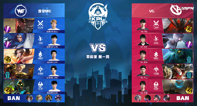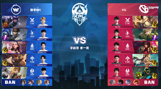 JRS直播网 3月11日2021KPL春季赛季前赛第一周第一日比赛,由西安WE对阵VG,以下是本场比赛快讯。