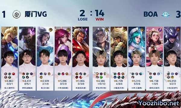JRS直播网讯 北京时间04月18日,2024KPL春季赛常规赛,在刚刚结束的比赛中,厦门VG 1:3不敌BOA。