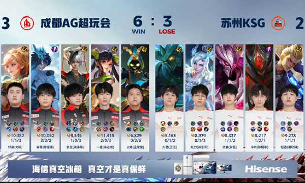 JRS直播网讯 北京时间7月5日,2024KPL夏季赛今日第三场比赛是由成都AG超玩会对阵到苏州KSG!最终,AG 3-2 战胜KSG。