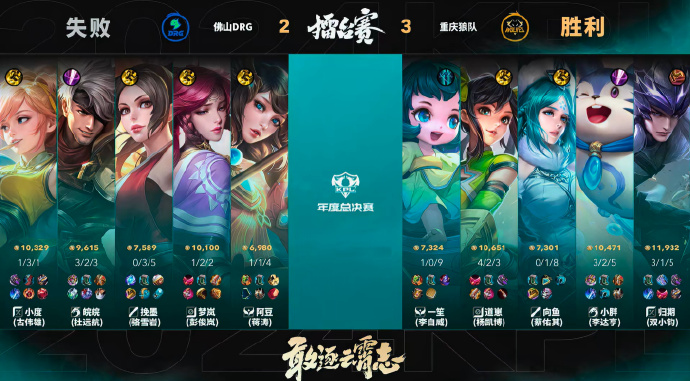 JRS直播网讯 北京时间10月5日,2024王者荣耀年度总决赛,今日第二场比赛是由重庆狼队对阵到佛山DRG!鏖战五局!重庆狼队3:2击败佛山DRG。