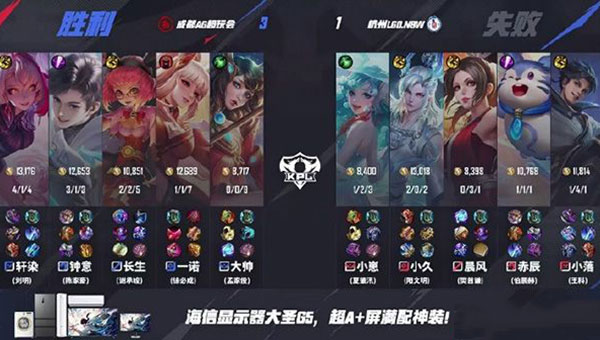 第四局,最后一波中路正面开战AG打了一波1换3后来到对方水晶,点掉水晶拿下本次大场的胜利,拿下跨版本的十七连胜!本局MVP为成都AG_钟意 (陈家豪)元流之子!
