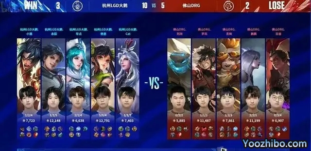 JRS直播网讯 北京时间4月22日,在KPL第一场比赛中,杭州LGD大鹅以3-2的比分力克佛山DRG,拿下第三轮常规赛的第四个大场积分,已经稳居前二。