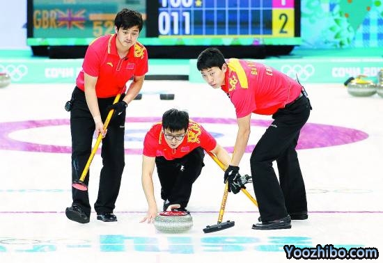 第四局比赛,中国队后手,中国队倒数第二投,中国选择分球出现失误,对方的最后一投,传了一下自己大本营前方的壶,停在了中心,中国队最后一投稳稳的停在了更中心的位置,中国队后手拿到1分,3-1领先俄奥运队。