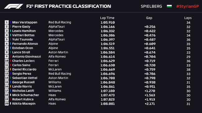 2021F1施蒂利亚大奖赛一练最终成绩: