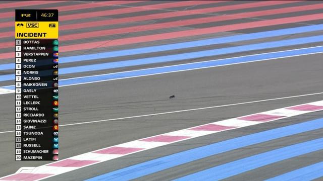 二练开始了15分钟左右,维斯塔潘的赛车在压上路肩后,前鼻翼有一定损伤,并在赛道上留下了碎片,因此触发了短暂虚拟安全车,随后有赛道工作人员将碎片捡走。
