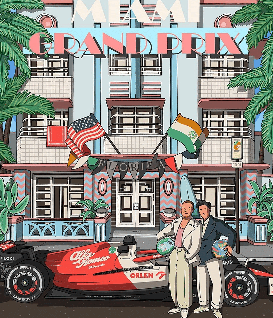 同时周冠宇抵达迈阿密之后受到热烈的欢迎,其中就包括去到迈阿密海豚队的硬石体育场,尝试了一把橄榄球。同时阿尔法罗密欧车队的海报中,使用的还是经典美剧《迈阿密风云》,其中就有中国演员巩俐参演,而周冠宇在海报中的卡通形象也很酷。