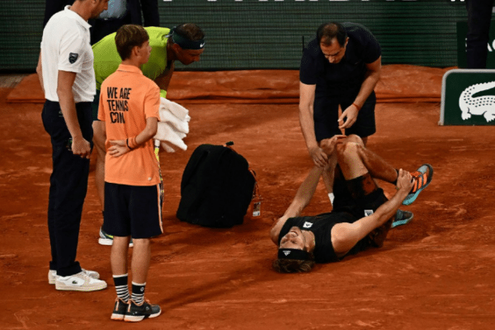 第二盘,小兹维列夫又是一度5-3领先,拿到发球胜盘局。但纳达尔再度顽强化解,并将比分追到5平。小兹维列夫保发第11局,但第12局的最后1分出现致命意外。小兹维列夫滑步救球时,不慎严重扭脚,他撕心裂肺的呼喊让整座球馆一片死寂。随后,小兹维列夫坐轮椅离场,不久后拄拐回到场内同裁判和纳达尔握手,宣布退赛。