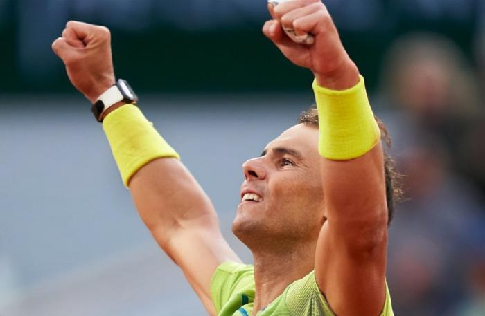 第四盘,德约第二局砸网带宣泄之后找到状态,率先破发。随后,德约5-3带出发球胜盘局。但纳达尔顽强破发,并将比赛拖入抢七。抢七中,纳达尔6-1完美开局。随着纳达尔反手打出制胜分,他以7-4拿下抢七,从而以3-1击败卫冕冠军德约科维奇。全场比赛耗时4小时12分钟,纳达尔也连续两场经历4小时鏖战。获胜一刻,纳达尔振臂庆祝,随后露出了灿烂的笑容。随后,纳达尔回到场内,双手掩面非常激动。