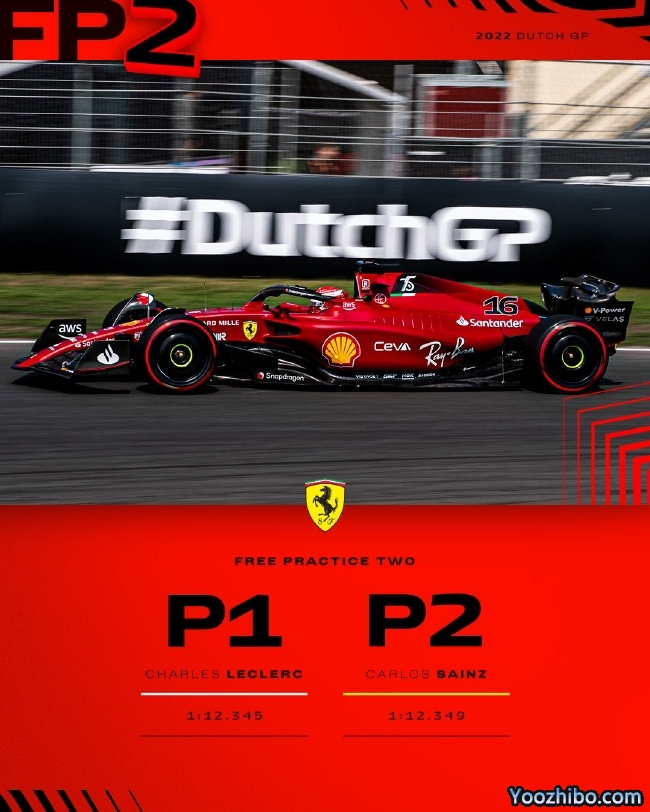 JRS直播网讯 2022年F1荷兰大奖赛第2次练习赛9月2日晚结束,法拉利车队夏尔·勒克莱尔以1分12秒345的成绩排名第一,队友塞恩斯仅落后0.004秒位居第二,汉密尔顿第三。诺里斯、拉塞尔、斯托尔、阿隆索、维斯塔潘、奥康、里卡多分列四至十位。中国车手周冠宇圈速排名第15位。