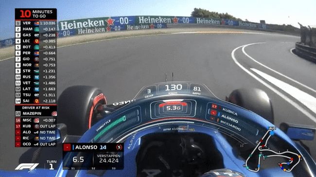 Q3剩余最后1分钟,车手们重新回到赛道,进行自己最后的计时圈。